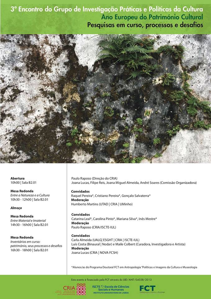 A Binaural Nodar estará presente no 3º Encontro do Grupo de Investigação Práticas e Políticas da Cultura do CRIA-Centro em Rede de Investigação em Antropologia, este ano integrado nas atividades do Ano Europeu do Património Cultural 2018.