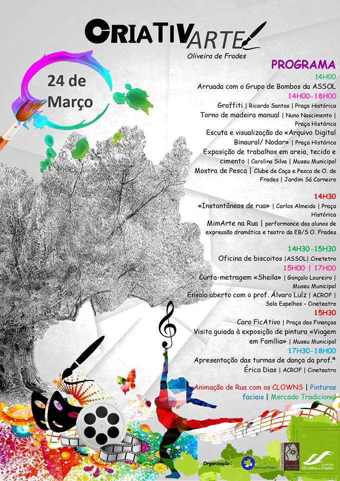 A Binaural Nodar tem o gosto de comunicar que participa pela segunda vez no CriativArte, um evento promovido pelo Município de Oliveira de Frades para celebrar o Dia da Criatividade Artística, a ter lugar ao longo do dia de 24 de março em vários locais da vila.