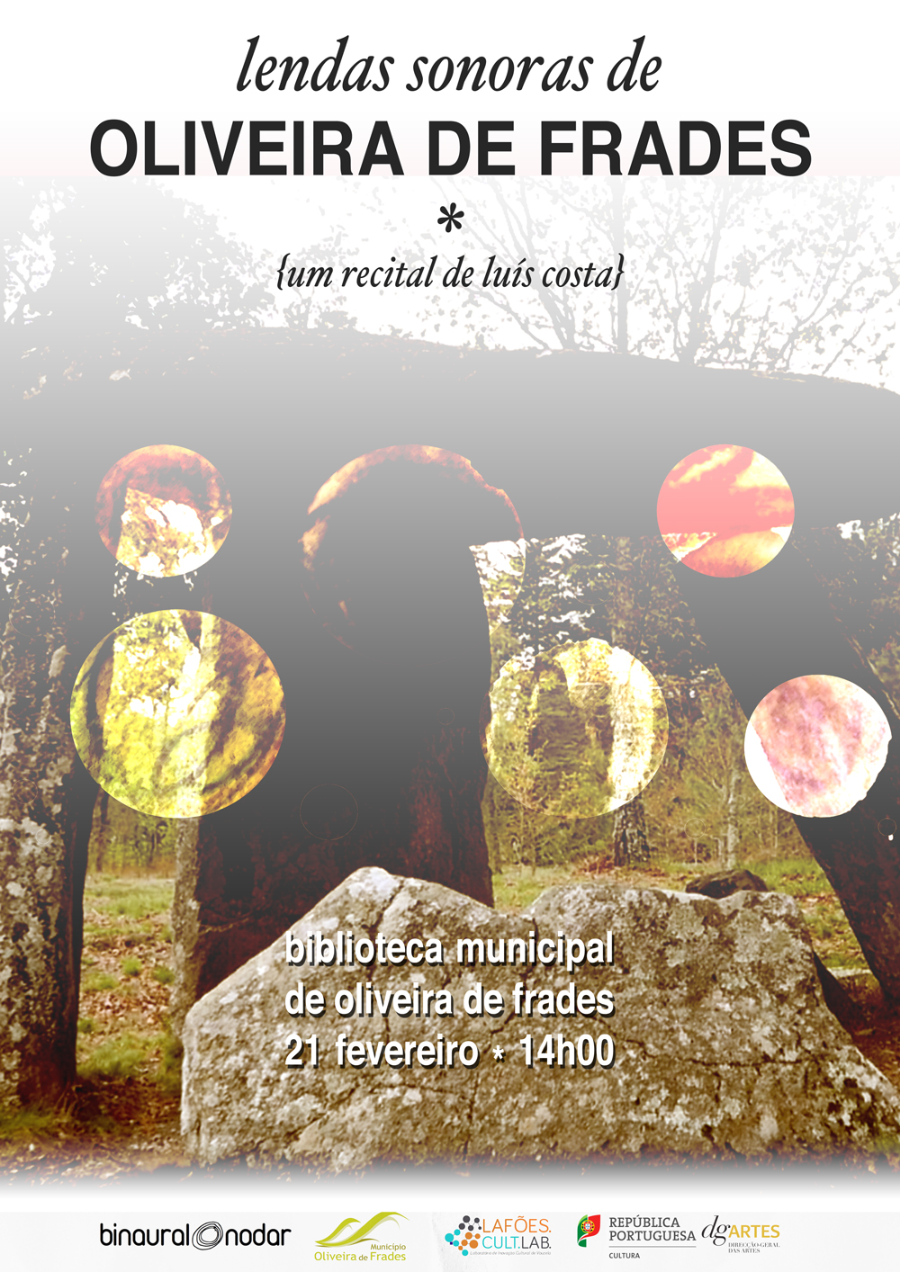 “Sound Legends of Oliveira de Frades” is a recital for children of three chosen legends from the region (legend of the dolmen of Paranho de Arca, legend of the stone in the air and legend of the bridge of Cunhedo), which will be involved by an audiovisual environment visual, thus fostering new readings and appropriations of stories lost in the mist of time.