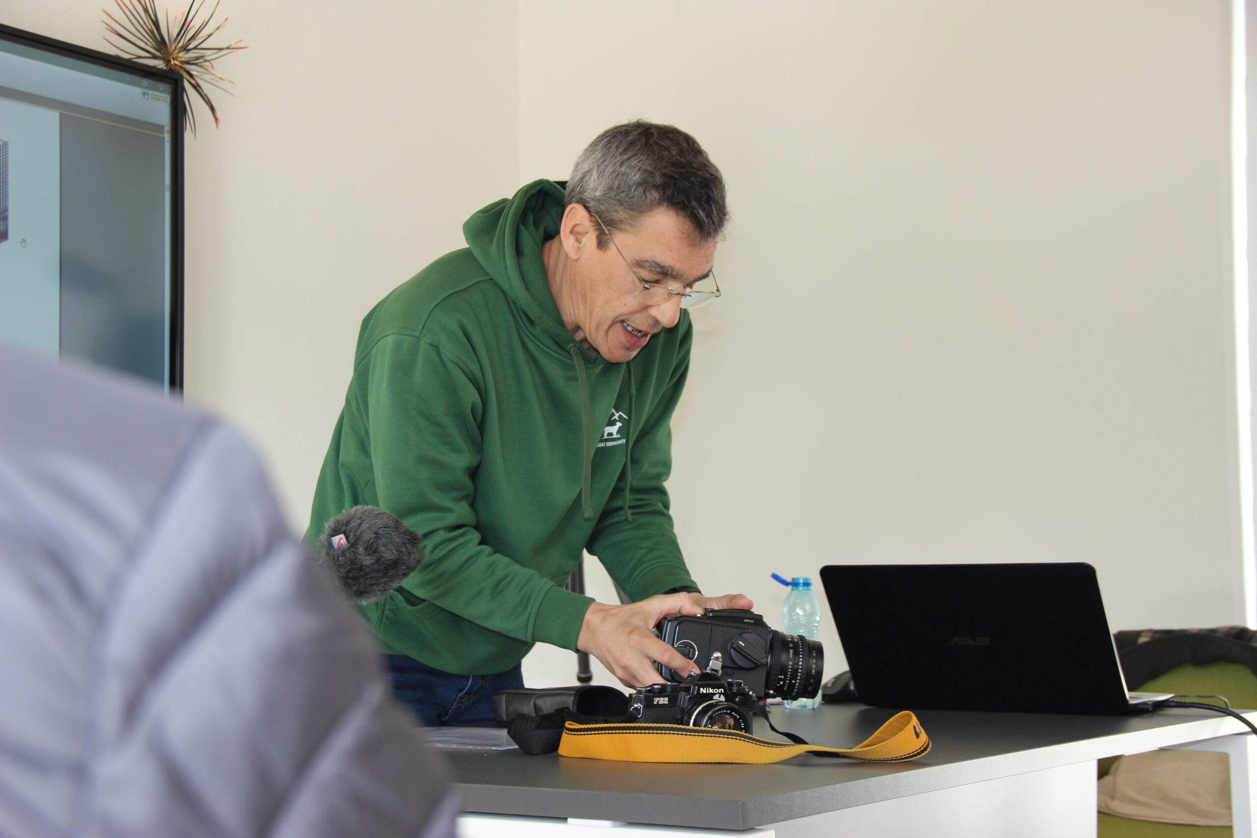 In the first week, the groups were accompanied by photographer José Miguel Figueirinhas, who began his intervention with a theoretical and technical approach, namely the history of photography, basic concepts such as exposure, aperture, shutter speed, and image composition.