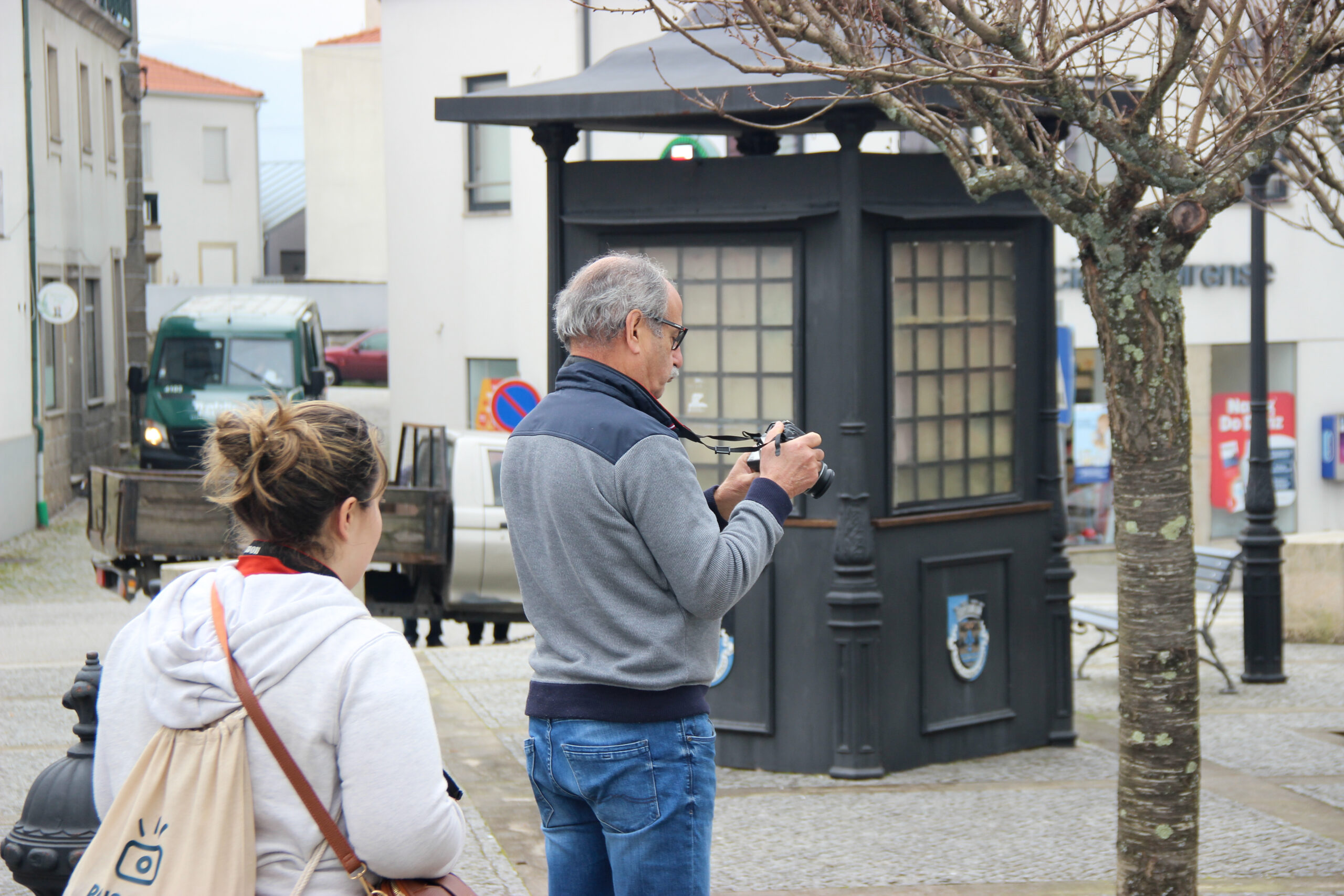 As the participants began to explore the cameras, they had their first experiences of capturing images as they toured the village, passing through the fortnightly market, the Sports Park (where they watched the GDOF youth teams training), the historic center, the Municipal Museum, the Church of S. Pelágio, and the Volunteer Fire Department.