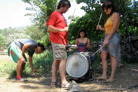 A show of a gathering of sound actions and performances, in natural space that take advantage of the geographical context of Paiva river next to the village of Nodar. After a brief collective reflection about the notion of time, different schedules, eternal cyclical returns and the symbology of the spiral cycle itself. The end result was a multidisciplinary performance of a Spanish artist collective.